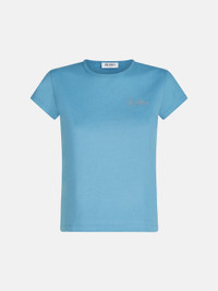 T-shirt in blue light jersey. Made in Portugal. Style 251WCT00357JJJ025AA015 SIZE & FIT The model is wearing a size 40 and her height is 70 in, bust 31,1 in, waist 24 in, hips 34,6 in - height 178 cm, bust 79 cm, waist 61 cm, hips 88 cm. Regular fit. We recommend taking your true size. DETAILS Main material: 100% cotton, second material: 100% cotton