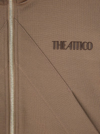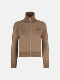 Track jacket in brown shiny jersey with front zip. Made in Italy. Style 250WCF00022JJJ055AA064 SIZE & FIT The model is wearing a size 40 and her height is 69,6 in, bust 30,7 in, waist 23,2 in, hips 34,6 in - height 177 cm, bust 78 cm, waist 59 cm, hips 88 cm. Regular fit. We recommend taking your true size. DETAILS Main Material: 52% cotton 48% polyester, rib: 95% viscose 5% elastane