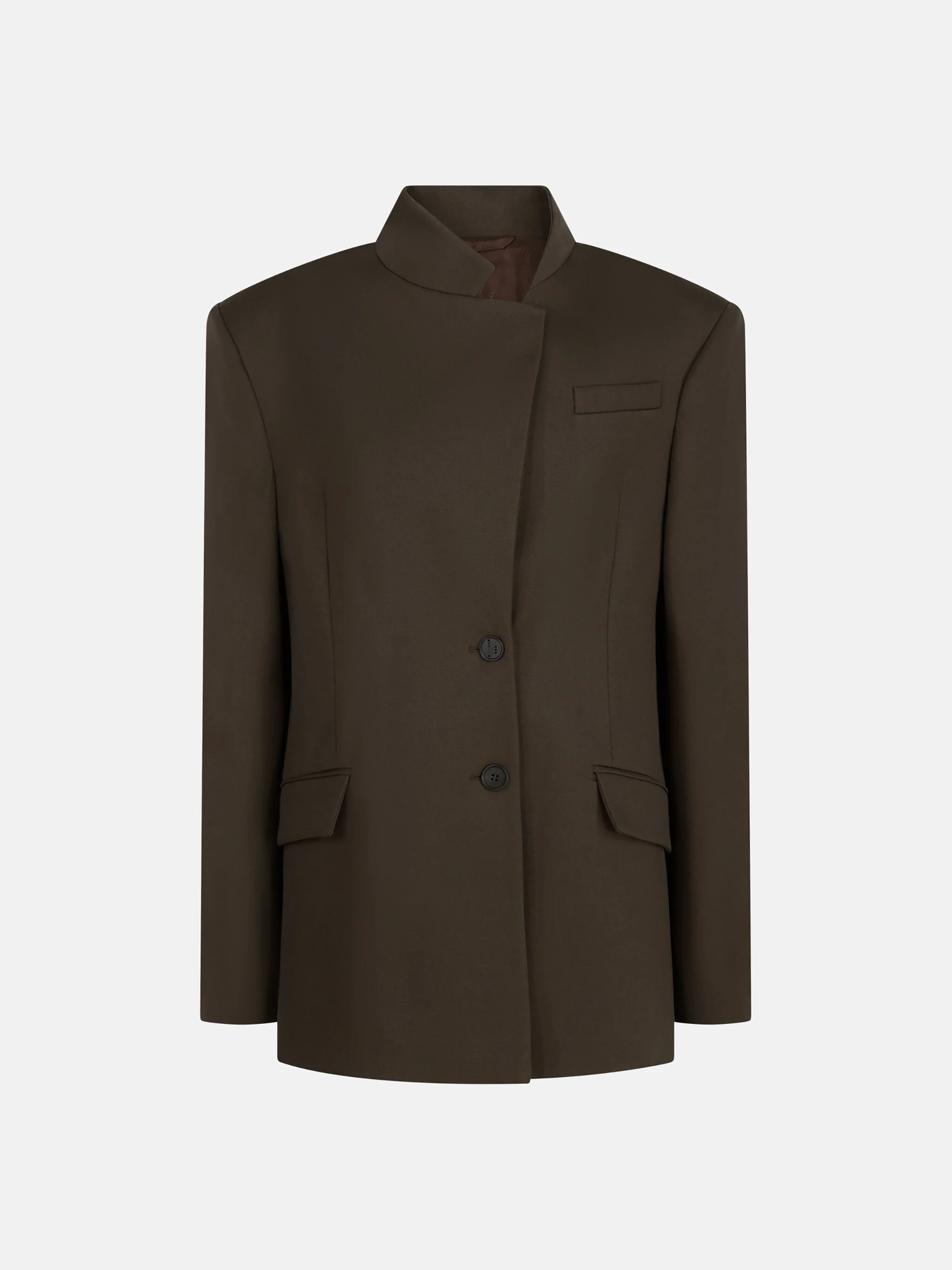 Jacket in brown stretch wool gabardine. Made in Italy. Style 251WCG00084WWW061AA064 SIZE & FIT The model is wearing a size 40 and her height is 70 in, bust 31,1 in, waist 24 in, hips 34,6 in - height 178 cm, bust 79 cm, waist 61 cm, hips 88 cm. Regular fit. We recommend taking your true size. DETAILS Main material: 98% virgin wool 2% elastane, lining: 100% viscose
