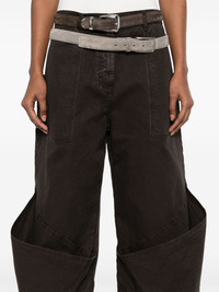 wide-leg trousers Highlights - Coffee brown - Concealed fly and button fastening - Belt loops - Two side patch pockets - Two rear patch pockets Made in Italy Composition Outer: Cotton 100% Lining: Cotton 100% SIZE & FIT Model measurements Height 5 ft 11 in(1.8 m) Bust/Chest 31.49 in(80 cm) Hips 35.82 in(91 cm) Waist 24.8 in(63 cm) FittingInformation Designed with a wide-leg cut, these trousers allow for a close fit at the waist and offer a loose and roomy fit over the leg Sturdy and hard-wearing, this denim piece offers no stretch Measurement FRONT RISE 13.5 in(34.3 cm) INSIDE LEG 33.5 in(85.1 cm) HIPS 42 in(106.7 cm) Hem Width 25.98 in(66 cm) WAIST 32 in(81.3 cm)