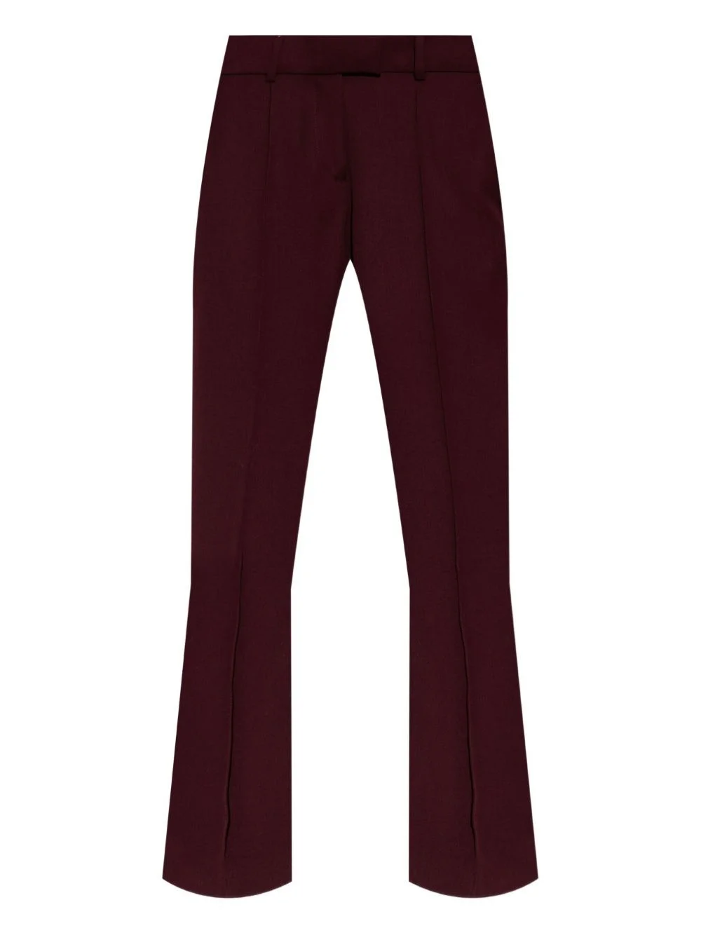 centre-seam flared trousers Highlights - Burgundy - Virgin wool - Centre-seam detail - Back welt-pockets - Slash pockets - Silver-tone logo plaque Made in Italy Composition Virgin Wool 100% Washing instructions Read Manufacturer Guidelines