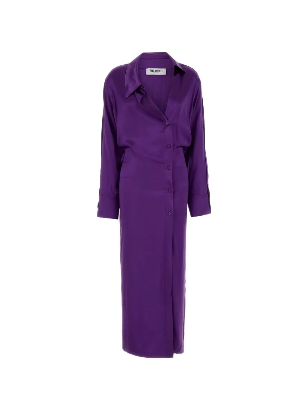satin dress Highlights - Dark purple - Point collar - Button fastening - Long sleeves - Buttoned cuffs Made in Italy Composition Viscose 100% Washing instructions Read Manufacturer Guidelines