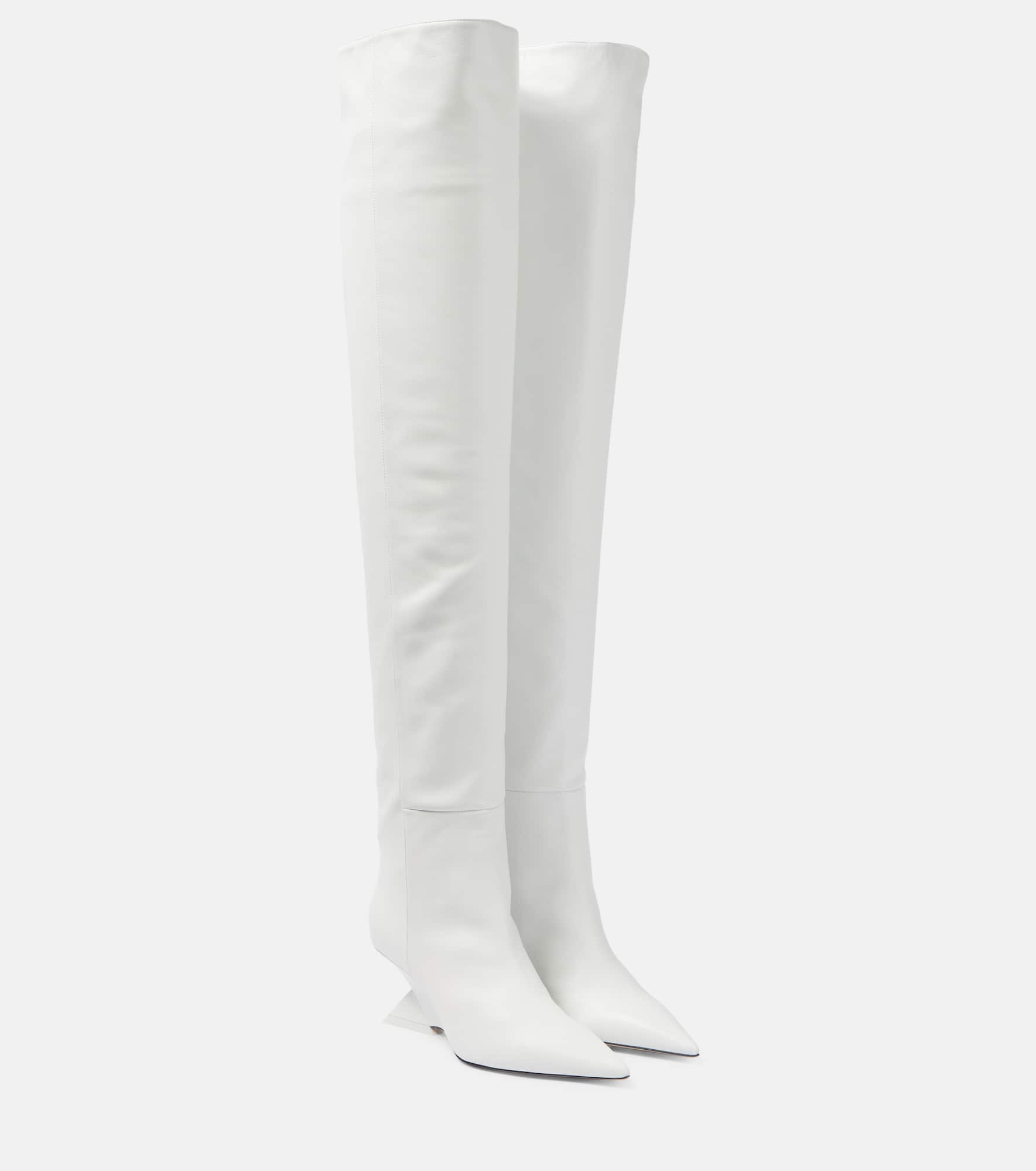 The Attico’s message is simple – it’s time to dress up. The Cheope boots are made from leather to an over-the-knee silhouette set atop sculptural wedge heels. Product Details - Sole: leather insole and sole - Toe shape: pointed toe - Upper: leather - Comes with dust bags - Designer color name: White - Comes with a box - Made in Italy - Item number: P00805325 Size & Fit - True to size - Slightly wide - European sizes - 7cm-3" heel (size EU 38) - 73cm-28.5" shaft height (size EU 38) - 42cm-16.5" shaft width (size EU 38)