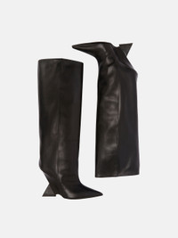 'Cheope'' tube boot in black calf leather with pyramidal wedge, height 105mm. Made in Italy. Style 231WS626L019100 SIZE & FIT The model is wearing a size 39. DETAILS Main Leather: 100% calf leather dyed, bos taurus farm raised coo: East Europe, insole and lining: 100% goat leather dyed, capra hircus farm raised coo: India, sole: 100% bovine leather dyed, bos taurus farm raised coo: France, heel 105mm.