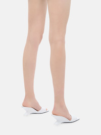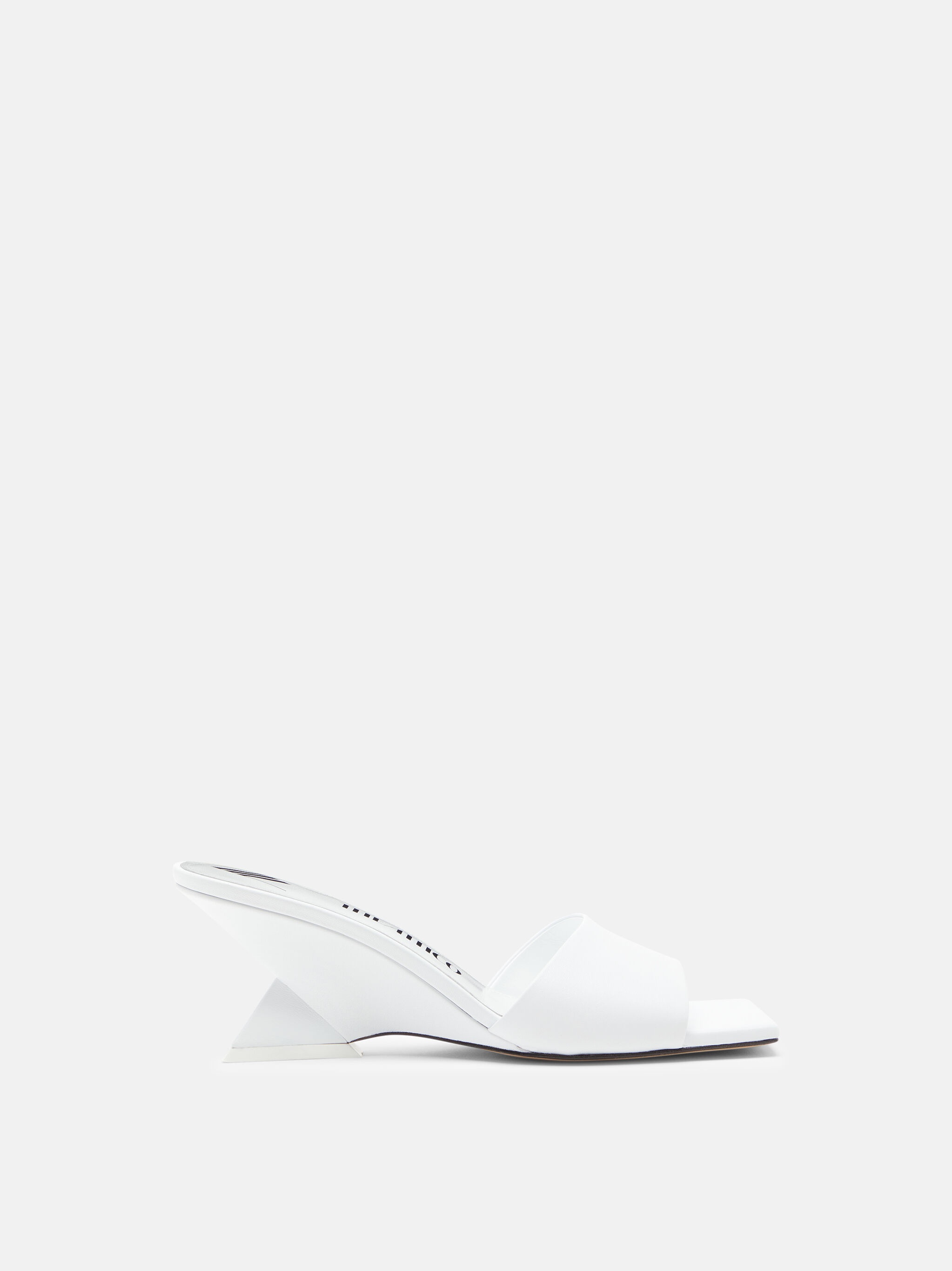 "Mini Cheope'' mule in white nappa leather with pyramid wedge, height 60mm. Made in Italy. Style 232WS605L001001 SIZE & FIT The model is wearing a size 39. DETAILS Main leather: 100% lamb leather dyed, ovis aries aries farm raised coo: South Africa, insole and lining: 100% goat leather dyed, capra hircus farm raised coo: India, sole: 100% bovine leather dyed, bos taurus farm raised coo: Germany, heel 60mm -Style WS605L001001