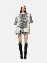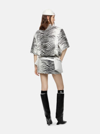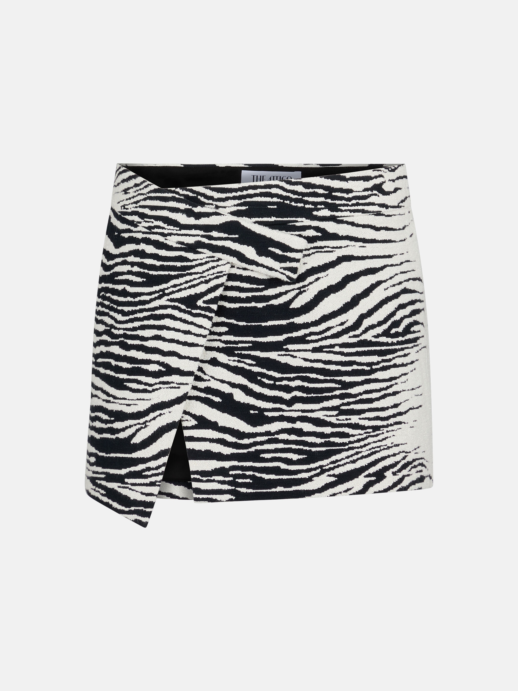''Cloe'' wrap mini skirt in white and black tiger jacquard with black jacquard logo lining. Style 231WCS103C060020 SIZE & FIT The model is wearing a size 40 and her height is 179 cm, bust 80 cm, waist 60 cm, hips 90 cm. Regular fit. We recommend taking your true size. DETAILS Main fabric: 34% viscose 49% cotton 14% polyamid 3% polyester, lining: 100% cupro