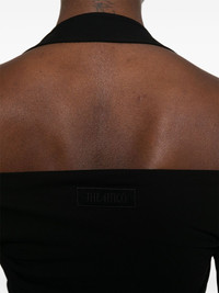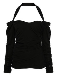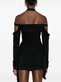 halterneck long-sleeves mini dress Highlights - Black - Ruched detailing - Draped detailing - Long draped sleeves - Embroidered logo to the rear Made in Italy Composition Viscose 100%, Polyamide 69%, Elastane 31% SIZE & FIT Model measurements Height 5 ft 10 in(1.78 m) Bust/Chest 31.49 in(80 cm) Hips 37 in(94 cm) Waist 23.62 in(60 cm) FittingInformation Designed for a slim fit that sits just away from the body offering a close yet comfortable fit Made from a midweight stretch fabric, this piece offers elasticity and flexibility when worn Washing instructions Dry Clean Only