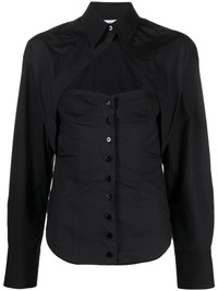 cut-out corset-style cotton shirt The Attico expertly blends two classic styles with this piece. Crafted from stretch cotton in a jet black colourway, the look is defined by the eye-catching interplay between the corset style bodice and shirt-style collar and sleeves. Highlights - Black - Stretch-cotton - Corset style - Cut-out detailing - Front button fastening - Classic collar - Long sleeves - Curved hem Made in Italy Composition Cotton 97%, Elastane 3% SIZE & FIT Model measurements Height 5 ft 10 in(1.78 m) Bust/Chest 29.92 in(76 cm) Hips 34.64 in(88 cm) Waist 23.62 in(60 cm) FittingInformation Designed for a close fit throughout Made from a midweight non-stretch fabric, this piece offers minimal elasticity when worn This piece fits true to size – take your usual size