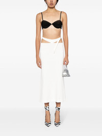 cut-out midi skirt The Attico reinterprets Y2K-era trends with this white midi skirt. Cut from stretch fabric, it boasts a low-rise silhouette with cut-out and strap detailing, creating the illusion of underwear peeking through the garment. Highlights - White - Cut-out detailing - Strap detailing - Stretch-design - Low-rise - Mid-length - Straight hem Made in Italy Composition Body: Rayon 68%, Polyamide 27%, Elastane 5% SIZE & FIT Model measurements Height 5 ft 10 in(1.77 m) Bust/Chest 31.49 in(80 cm) Hips 35.43 in(90 cm) Waist 25.19 in(64 cm) FittingInformation This midi-length skirt is intended to be worn low on the hips Made from a midweight stretch fabric, this piece offers elasticity and flexibility when worn This piece fits true to size – take your usual size Measurement LENGTH 31.49 in(80 cm) WAIST 27.99 in(71.1 cm) HIPS 29.01 in(73.7 cm) Washing instructions Hand Wash