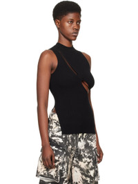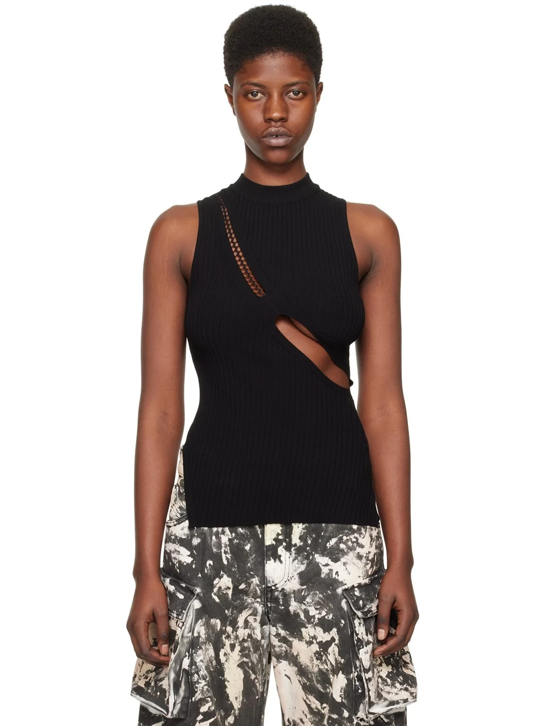 Rib knit viscose-blend tank top. Cutout throughout. · Crewneck · Vented side seam Supplier color: Black 69% viscose, 29% polyester, 2% cotton. Made in Italy 241528F111006