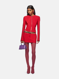 Midi skirt in vibrant red crepe stretch with loops, leather belt and metal branded buckle. Made in Italy. Style 248WCS226E100278 SIZE & FIT The model is wearing a size 40 and her height is 69,6 in, bust 30,7 in, waist 23,2 in, hips 34,6 in - height 177 cm, bust 78 cm, waist 59 cm, hips 88 cm. Regular fit. We recommend taking your true size. DETAILS Main material: 90% polyester 10% elastane, lining: 100% viscose