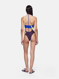 One piece in dark grape, iris blue and light yellow light lycra with cut out and logo metal ends. Made in Italy. Style 243WBB86PA62658 SIZE & FIT The model is wearing a size S and her height is 5,10 in, bust 31,5 in, waist 23 in, hips 34,5 in - height is 176 cm, bust 79 cm, waist 58 cm, hips 87 cm. Tight fit. Size up for a comfortable fit. DETAILS Main fabric: 73% nylon 27% elastane, lining: 84% nylon 16% elastane