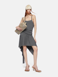 Asymmetrical mini dress in dark grey melange jersey with deep neckline at the back. Made in Italy. Style 250WCA00392JJJ056AA874 SIZE & FIT The model is wearing a size 40 and her height is 69,6 in, bust 30,7 in, waist 23,2 in, hips 34,6 in - height 177 cm, bust 78 cm, waist 59 cm, hips 88 cm. Regular fit. We recommend taking your true size. DETAILS Main Material: 95% viscose 5% elastane
