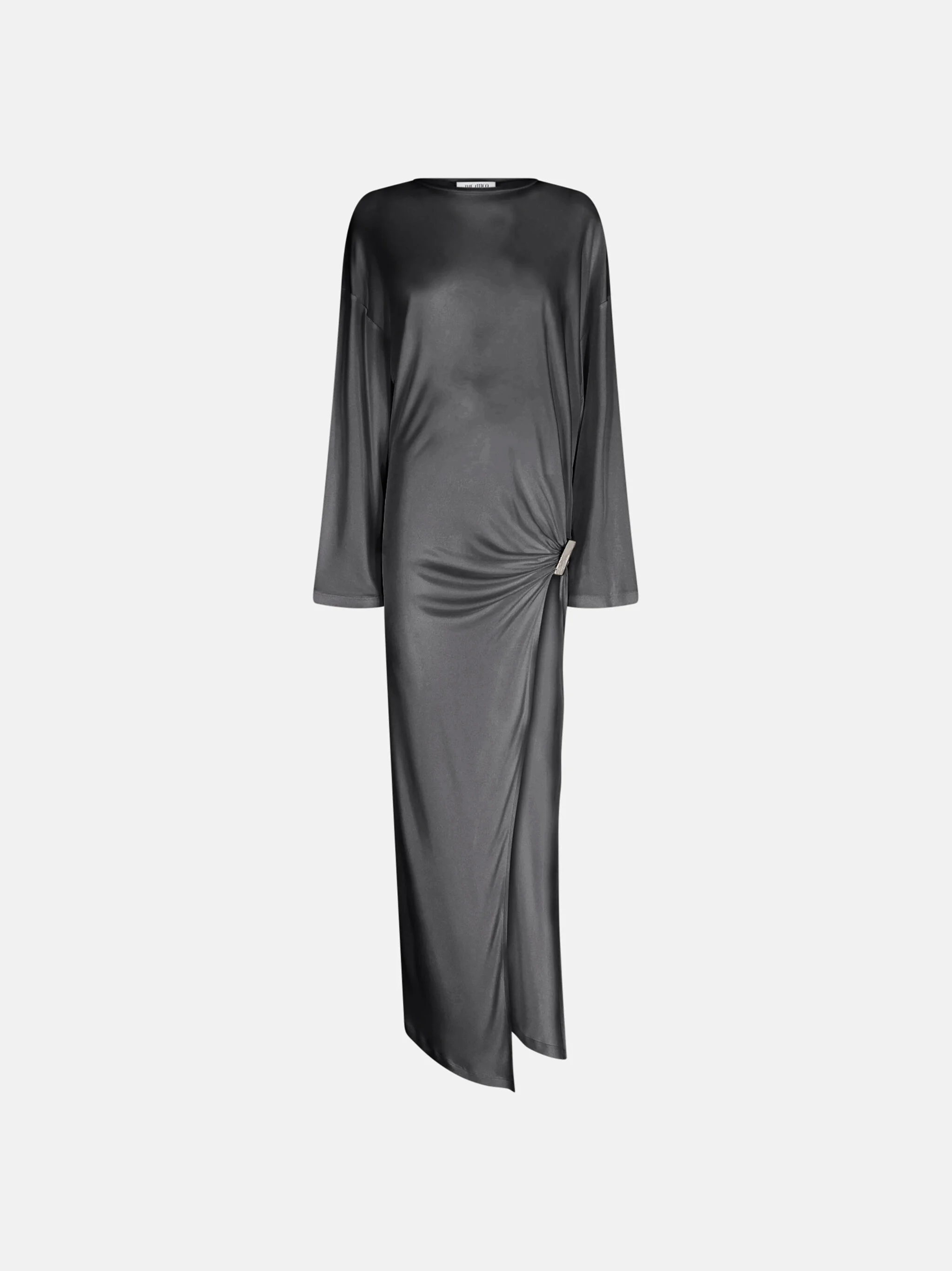 Midi dress in dark grey shiny jersey. Made in Italy. Style 251WCW00244VVV107AA233 SIZE & FIT The model is wearing a size 40 and her height is 70 in, bust 31,1 in, waist 24 in, hips 34,6 in - height 178 cm, bust 79 cm, waist 61 cm, hips 88 cm. Regular fit. We recommend taking your true size. DETAILS Main material: 100% viscose