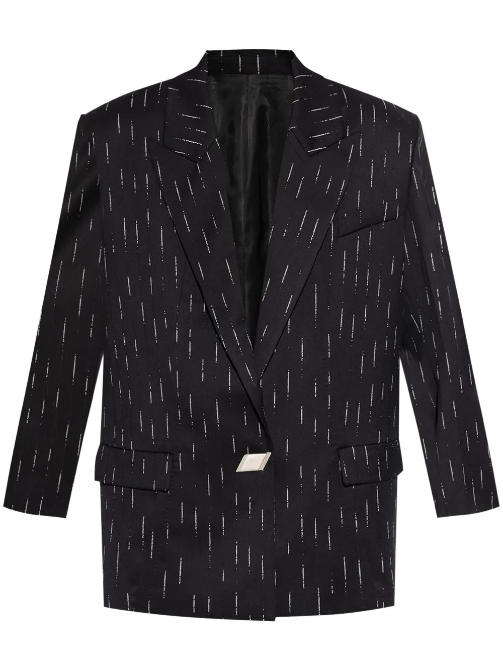 single-button wool-blend blazer Highlights - Black - Wool blend - All-over graphic print - Tailored design - Oversize frame - Notched lapels - Silver-tone hardware - Single front button fastening - Buttoned cuffs - Long sleeves - Chest welt pocket - Two side flap pockets Made in Italy Composition Outer: Wool 70%, Polyamide 30% Lining: Viscose 100%