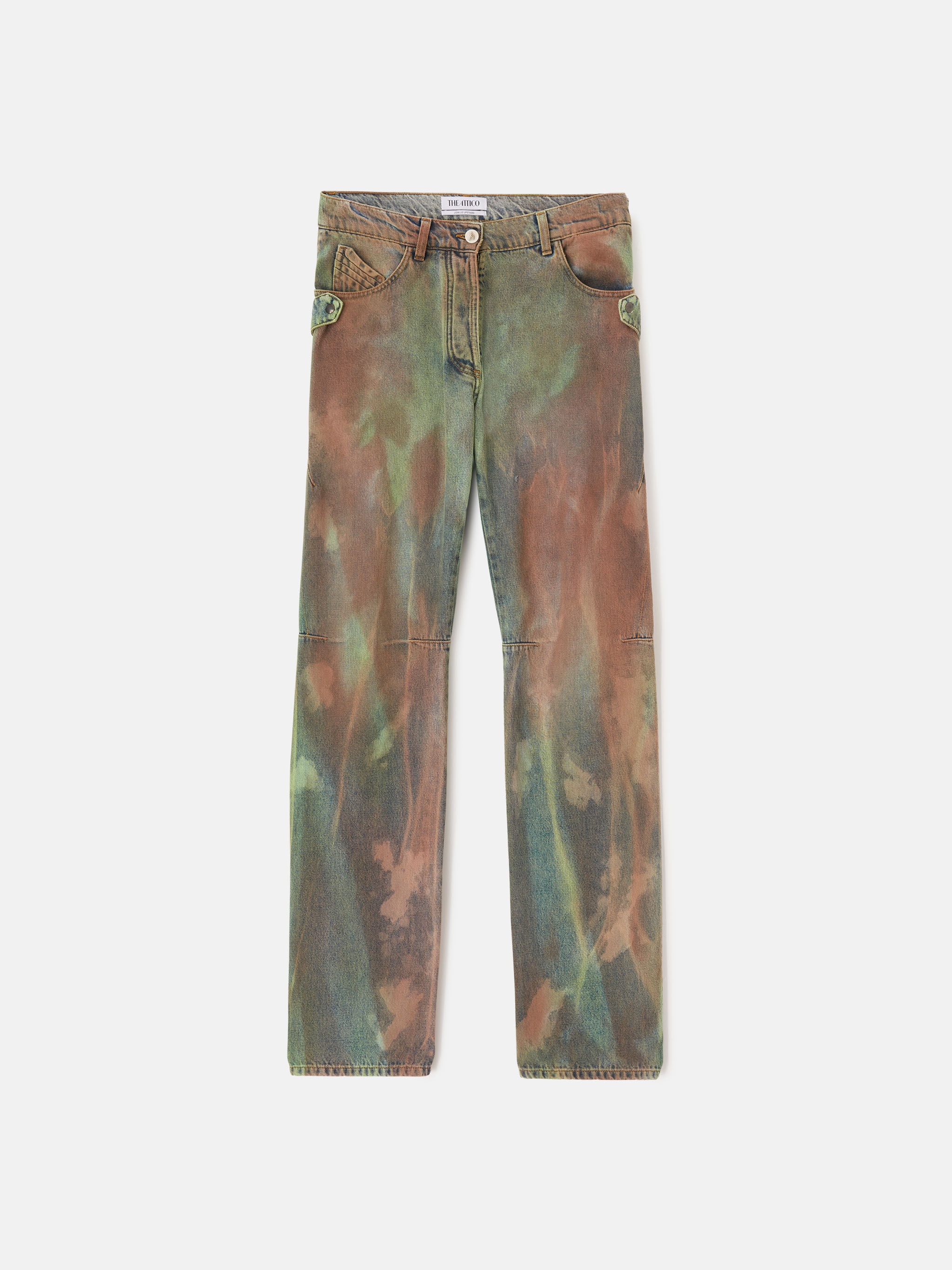 "Deann" long pants in camouflage denim with double back with buttons and folded fifth pocket. Style 238WCP118D065509 SIZE & FIT The model is wearing a size 40 and her height is 70,4 in, bust 30,7 in, waist 21,6 in, hips 34,6 in - height 179 cm, bust 80 cm, waist 60 cm, hips 90 cm. Relaxed, oversized fit. We recommend taking one size smaller. DETAILS Main fabric: 100% cotton, lining: 65% polyester 35% cotton