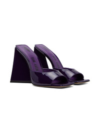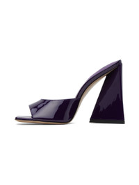 Patent nappa calfskin slip-on heels in purple. · Square toe · Logo printed at padded goatskin footbed · Grained goatskin lining · Covered sculptural block heel with rubber injection · Leather sole · Heel: H4" Supplier color: Electric purple Upper: calfskin. Sole: leather, rubber. Made in Italy 241528F125000