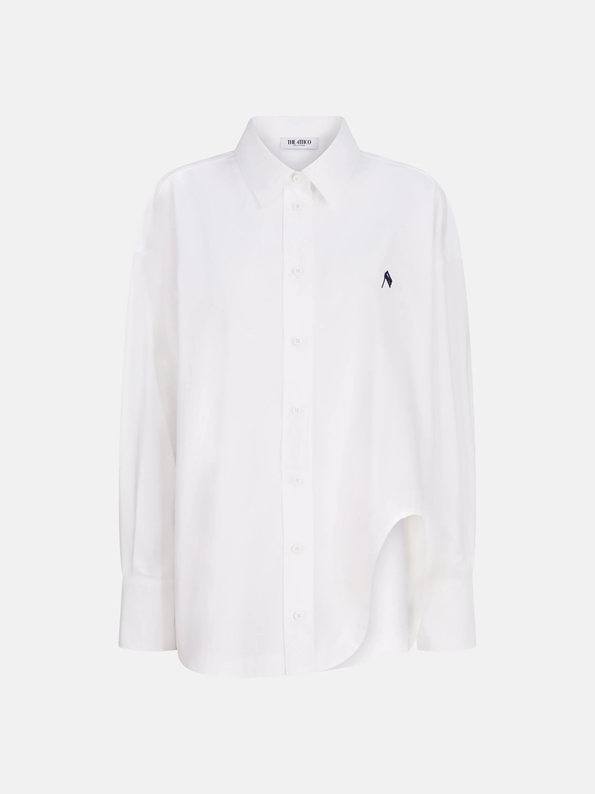 ''Diana'' shirt in white and navy blue popeline. Made in Italy. Style 251WCH00004CCC052AA870 SIZE & FIT The model is wearing a size 40 and her height is 70 in, bust 31,1 in, waist 24 in, hips 34,6 in - height 178 cm, bust 79 cm, waist 61 cm, hips 88 cm. Relaxed, oversized fit. We recommend taking one size smaller. DETAILS Main material: 100% cotton
