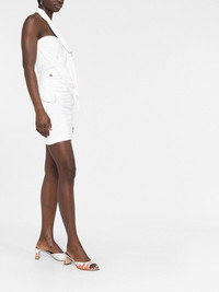 draped halterneck top The Attico's refined aesthetic is brought to life in the design of this fresh white top, evident in its relaxed halterneck silhouette and elegantly draped construction. Made in Italy Composition Polyester 95%, Polyamide 5% SIZE & FIT Model measurements Height 5 ft 10 in(1.77 m) Bust/Chest 32.28 in(82 cm) Hips 35.03 in(89 cm) Waist 25.19 in(64 cm) FittingInformation This piece fits true to size. We recommend you get your regular size Cut for a slim fit Made with a mid-weight fabric Washing instructions Machine Wash