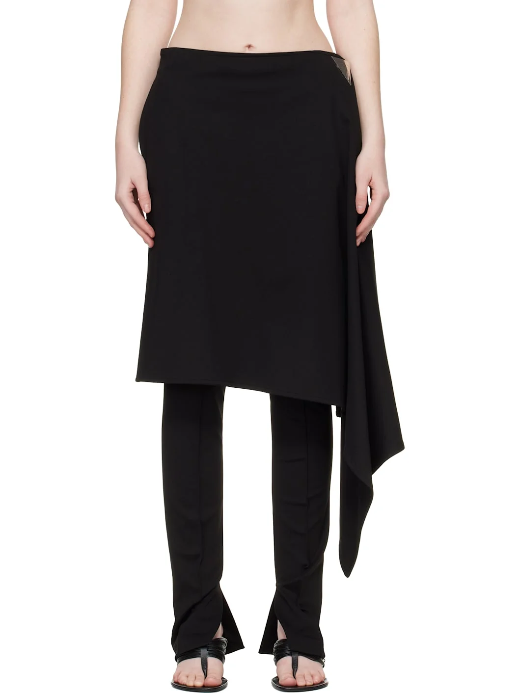 Stretch jersey trousers. · Straight-leg · Belt loops · Press-stud logo hardware at waist · Four-pocket styling · Integrated skirt-style overlay at front · Pinched seam at front and back legs · Vented cuffs · Zip closure at outseam Supplier color: Black 65% viscose, 30% polyamide, 5% elastane. Made in Italy 261528F087003