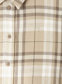 Eliza'' oversize shirt in beige cotton check with shaped split. Style 250WCH00004CCC050AA198 SIZE & FIT The model is wearing a size 40 and her height is 69,6 in, bust 30,7 in, waist 23,2 in, hips 34,6 in - height 177 cm, bust 78 cm, waist 59 cm, hips 88 cm. Relaxed, oversized fit. We recommend taking one size smaller. DETAILS Main Material: 80% cotton 20% polyester