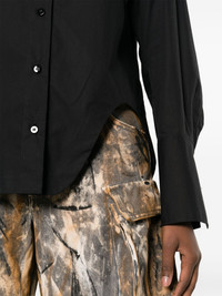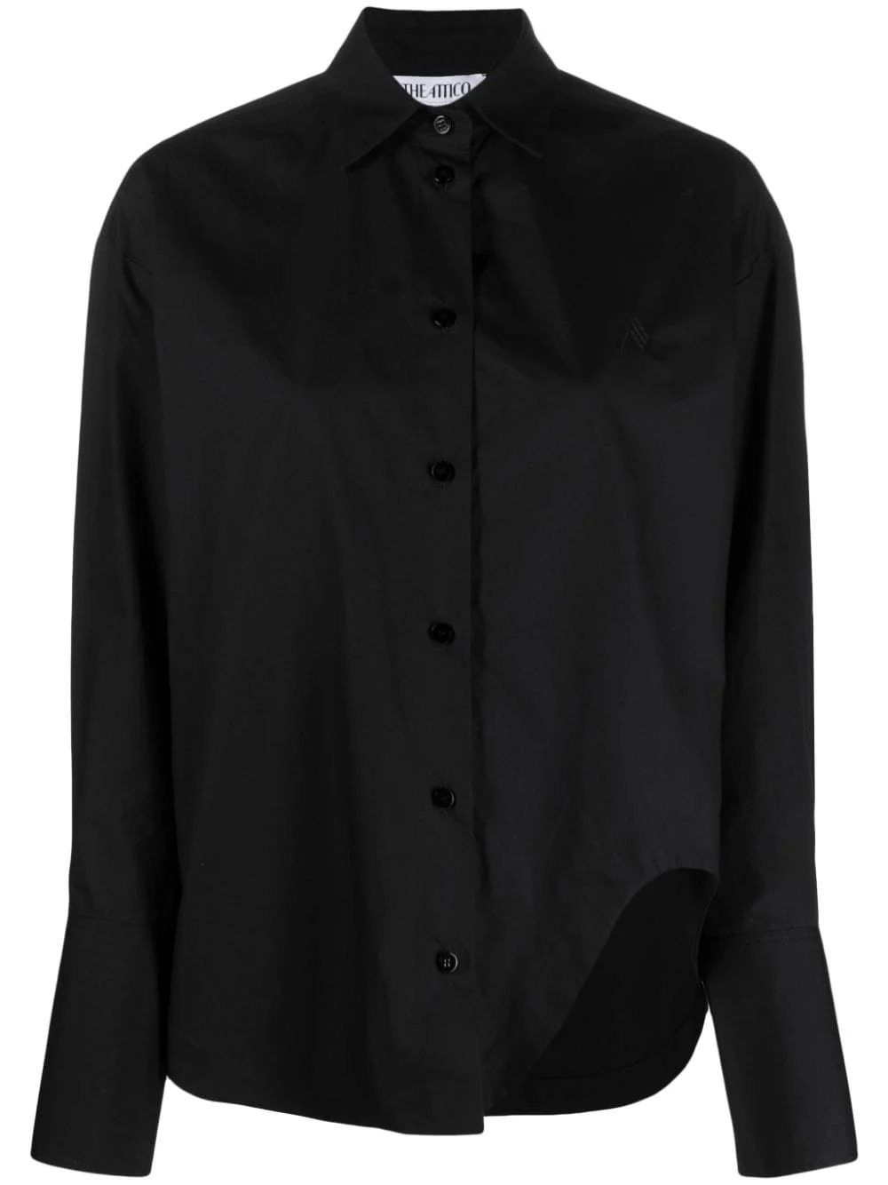 Eliza logo-embroidered cotton shirt Bold designs underpin The Attico's collections, and this shirt is a prime example. Crafted from cotton, it's cut to a relaxed silhouette and distinguished with a cut-out curve at the left side, creating an asymmetric hem. Highlights - Cotton - Black - Embroidered logo at the chest - Classic collar - Front button fastening - Long sleeves - Buttoned cuffs - Side slit - Straight hem Made in Italy Composition Cotton 100% SIZE & FIT Model measurements Height 5 ft 9 in(1.76 m) Bust/Chest 33.07 in(84 cm) Hips 38.58 in(98 cm) Waist 24.8 in(63 cm) FittingInformation Designed for a relaxed fit, this piece allows for comfort and movement when worn Made from a midweight non-stretch fabric This piece fits true to size – take your usual size Washing instructions Machine Wash