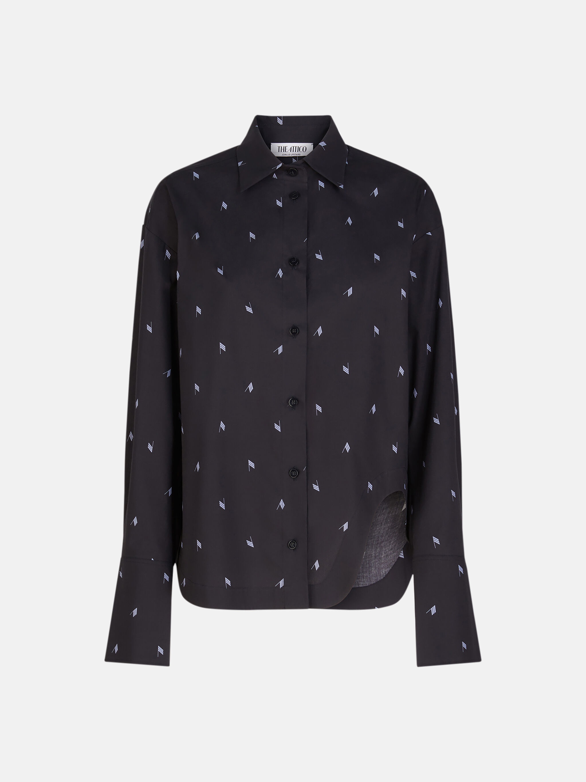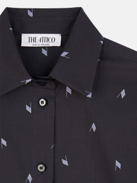 'Eliza'' regular shirt in navy blue and light blue logo printed popeline with shaped split. Made in Italy. Style 241WCH14C079596 SIZE & FIT The model is wearing a size 40 and her height is 69,6 in, bust 31,4 in, waist 23,6 cm, hips 34,6 in - height 177 cm, bust 80 cm, waist 60 cm, hips 88 cm. Regular fit. We recommend taking your true size. DETAILS Main fabric: 100% cotton