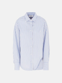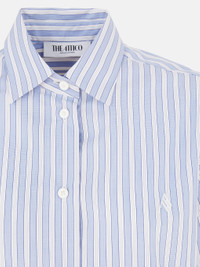 Eliza'' shirt in light banana popleine with shaped split in white and navy blue striped cotton. Made in Italy. Style 250WCH00014CCC051AA870 SIZE & FIT The model is wearing a size 40 and her height is 69,6 in, bust 30,7 in, waist 23,2 in, hips 34,6 in - height 177 cm, bust 78 cm, waist 59 cm, hips 88 cm. Regular fit. We recommend taking your true size. DETAILS Main Material: 100% cotton