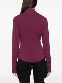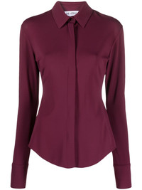 Elton concealed-fastening shirt A recurring style seen throughout The Attico's collections, the Elton shirt is updated for SS24. Free from embellishments, it is imagined in a purple grape colourway. Highlights - Grape purple - Classic collar - Concealed front fastening - Long sleeves - Buttoned cuffs - Curved hem Made in Italy Composition Acetate 75%, Polyamide 20%, Other fibres 5% SIZE & FIT Model measurements Height 5 ft 11 in(1.8 m) Bust/Chest 31.49 in(80 cm) Hips 36.22 in(92 cm) Waist 25.59 in(65 cm) Measurement BUST 35.98 in(91.4 cm) LENGTH 24.01 in(61 cm) WAIST 30 in(76.2 cm) SLEEVE LENGTH 25.51 in(64.8 cm) FittingInformation Designed for a slim fit that sits just away from the body offering a close yet comfortable fit Made from a midweight non-stretch fabric, this piece offers minimal elasticity when worn This piece fits true to size – take your usual size