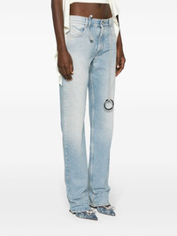 embellished low-rise tapered jeans The Attico’s tapered jeans revamp basic elements unexpected fashion – one belt loop cascades into an O ring-embellished strap while others extend into additional hoops. The coin pocket is pintucked to resemble the brand’s logo. Highlights - Sky blue - Cotton - Light wash - Faded effect - Strap detailing - Ring embellishment - Contrast stitching - Logo-embossed buttons - Pintuck detailing - Embroidered logo to the rear - Button fly fastening - Low-rise - Belt loops - Tapered leg - Classic five pockets - Straight hem Made in Italy Composition Outer: Cotton 100% Lining: Polyester 65%, Cotton 35% SIZE & FIT Model measurements Height 5 ft 11 in(1.8 m) Bust/Chest 32.67 in(83 cm) Hips 36.22 in(92 cm) Waist 24.4 in(62 cm) FittingInformation Designed for a tapered fit, these jeans allow a close fit at the waist and a loose unrestricted fit over the leg with a closer fit towards the ankle Sturdy and hard-wearing, this denim piece offers no stretch This piece fits true to size – take your usual size Washing instructions Machine Wash