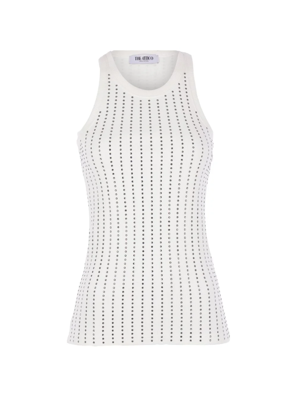 embellished top Highlights - White - Embellishments - Sleeveless - Ribbed Imported Composition Cotton 98%, Lycra 2% Washing instructions Read Manufacturer Guidelines