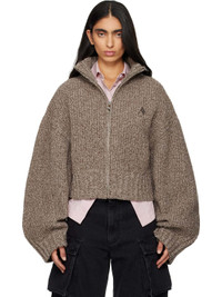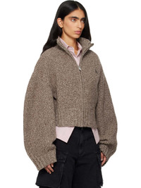 Knit wool- and cashmere-blend cardigan. · Rib-knit stand collar, hem, and cuffs · Zip closure · Logo embroidered at chest · Cropped hem · Dropped shoulders · Balloon sleeves Supplier color: Dark brown/White Body: 70% wool, 30% cashmere. Trim: 100% viscose. Made in Italy 261528F095003