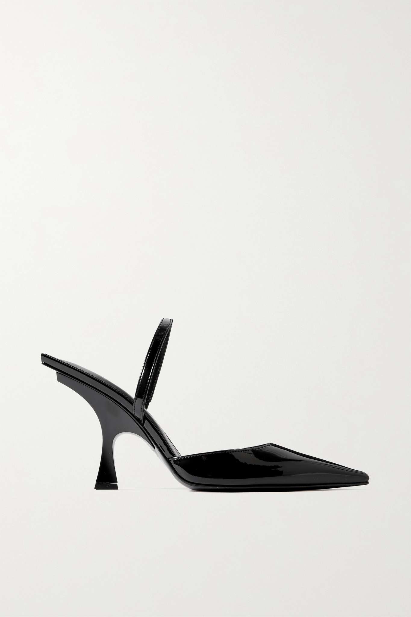 EDITORS'NOTES The Attico's 'Ester' sandals have such a cool, contemporary edge. Made in Italy from glossy patent leather, they have sharply pointed toes and rest on sculptural fluted heels. Wear yours with jeans, tailored pants and dresses alike. SIZE & FIT - Fits true to size, take your normal size - Italian sizing DETAILS & CARE - Heel measures approximately 95mm/ 4 inches - Black patent-leather (Goat) - Elasticated slingback strap