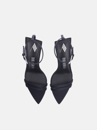''Ester'' sandal in black satin, matte painted heel, height 95mm. Made in Italy. Style 248WS815V015100 SIZE & FIT Model wears size 39. DETAILS Main fabric: 100% polyester dyed, insole and lining: 100% goat leather dyed, capra hircus hircus farm raised coo: India, sole: 100% bovine leather dyed, bos taurus farm raised coo: Western Europe. Heel 95mm.
