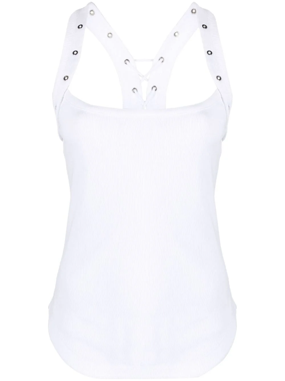 eyelet-embellished ribbed-knit tank top The Attico adds a playful twist to a classic silhouette in this white ribbed-knit tank top. It’s made from cotton, embellished with silver-tone metal eyelets along the shoulders and finished with lace-up self-ties at the back. Highlights - Optical white - Cotton - Fine ribbed - Eyelet embellishment - Scoop neck - Sleeveless - Rear lace-up fastening - Cut-out detailing to the rear - Logo plaque to the rear - Straight hem Imported Composition Polyester 100%, Cotton 100% SIZE & FIT Model measurements Height 5 ft 9 in(1.75 m) Bust/Chest 32.67 in(83 cm) Hips 38.58 in(98 cm) Waist 26.77 in(68 cm)