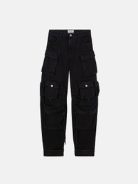 ''Fern'''' long pants in black washed denim with multi-pockets and folded fifth pocket. Made in Italy. Style 250WCP00084DDD066AA100 SIZE & FIT The model is wearing a size 40 and her height is 69,6 in, bust 30,7 in, waist 23,2 in, hips 34,6 in - height 177 cm, bust 78 cm, waist 59 cm, hips 88 cm. Relaxed, oversized fit. We recommend taking one size smaller. DETAILS Main Material: 100% CO, Lining: 65% PL 35% CO