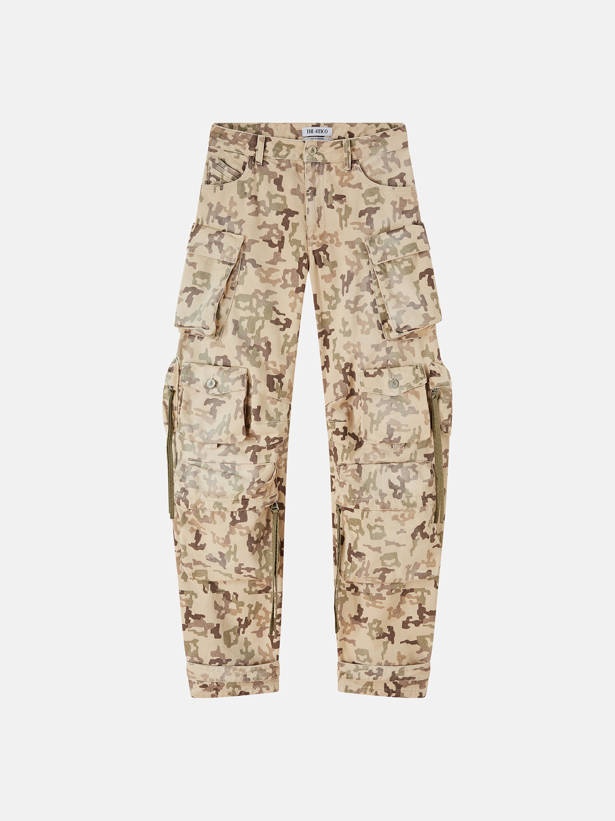''Fern'' long pants in camouflage print with multi-pockets, folded fifth pocket and embroidered logo. Made in Italy. Style 247WCP84D087P509 SIZE & FIT The model is wearing a size 26 and her height is 69,6 in, bust 30,7 in, waist 23,2 in, hips 34,6 in - height 177 cm, bust 78 cm, waist 59 cm, hips 88 cm. Relaxed, oversized fit. We recommend taking one size smaller. DETAILS Main fabric: 68% rayon 27% polyamide 5% elastane
