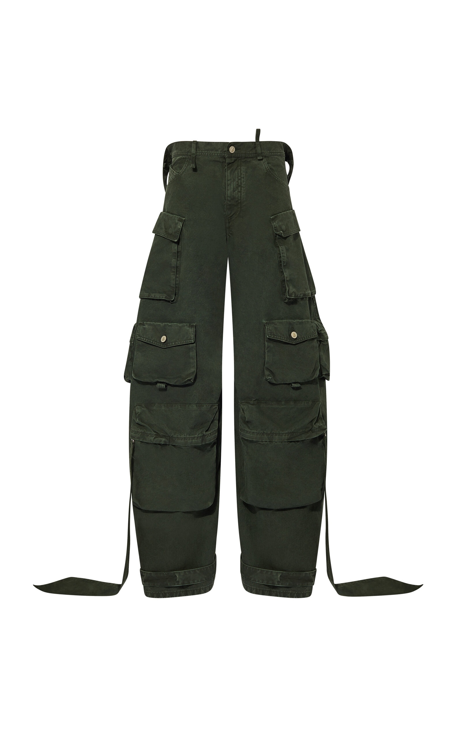 Gilda Ambrosio and Giorgia Tordini created The Attico for dressing up. The Milanese label is known for their sinuous sheen designs that make parties worth attending. This season is no less glamorous but infuses comfort and wearability to broaden the brand's cool, seductive appeal. Cut from cotton poplin, the military-inspired 'Fern' pants have voluminous extra-long parachute legs with utilitarian cargo pockets and zip-off cuffs. Try pairing yours with slingback pumps and a ribbed tank for an effortlessly chic day look. PRODUCT DETAILS - Featured in the Fall/Winter '23 collection - Button and concealed zip fastening along front - Composition: 100% cotton; Lining: 100% cotton - Designer color: Ivy - Dry clean - Made in Italy SIZE & FIT - Designed for a relaxed fit