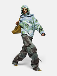 ''FERN'' STAINED GREEN CAMOUFLAGE LONG PANTS
