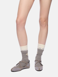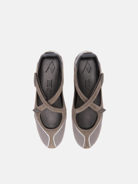 ''Floor 01'' ballerina flat in mix of grey synthetic material and leather. Made in Italy. Style 251WSH00871MIX062AA084 SIZE & FIT Model wears size 39 DETAILS Main Material: 60% polyurethane, 20% polyester, 20% suede leather, bos taurus farm raised coo: France, insole: 100% thermoplastic plyurethane, sole: 100% rubber.