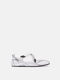 ''Floor 01'' ballerina flat in mix of silver synthetic material. Made in Italy. Style 250WSH00871MIX024AA002 SIZE & FIT Model wears size 39 DETAILS Main Material: 70% polyurethane, 30% polyester, insole: 100% thermoplastic plyurethane, sole: 100% rubber.
