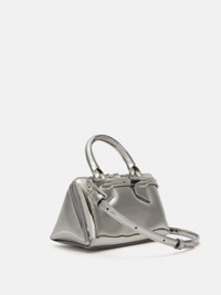 ''Friday'' mini handbag in silver padded laminated material with top handle and removable shoulder strap that doubles as a belt. Style 236WAH02PU02002 SIZE & FIT Height 7,9 inch, width 7,09 inch, depth 4,3 inch DETAILS Main material: 100% polyurethane, lining: 51% polyurethane, 49% (70% cotton 30% polyester), under shoulder: 100% calf bos taurus farm raised coo: USA, inside pocket: 100% polyurethane.