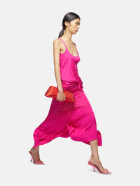 Midi dress in fuchsia jersey with double neckline and asymmetrical flared bottom. Made in Italy. Style 247WCM121J045698 SIZE & FIT The model is wearing a size 40 and her height is 69,6 in, bust 30,7 in, waist 23,2 in, hips 34,6 in - height 177 cm, bust 78 cm, waist 59 cm, hips 88 cm. Regular fit. We recommend taking your true size. DETAILS Main fabric: 92% viscose 8% elastane
