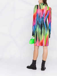 graphic-print shirtdress The Attico's vibrant graphic print on this shirtdress aligns with the Milanese brand's maximalist aesthetic that pushes the boundaries of design. The colourful hues look like brushes of paint artfully blended together. Made in Italy Composition Viscose 94%, Spandex/Elastane 6% SIZE & FIT Model measurements Height 5 ft 10 in(1.79 m) Bust/Chest 31.49 in(80 cm) Hips 34.25 in(87 cm) Waist 22.83 in(58 cm) Measurement LENGTH 39.37 in(100 cm) FittingInformation This piece fits true to size. We recommend you get your regular size Designed for a close fit at the bust, waist and hips Made with a mid-weight stretch fabric Washing instructions Dry Clean Only