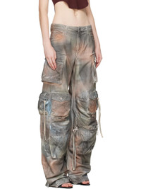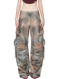 Non-stretch denim jeans. · Fading and discoloration throughout · Belt loops · Five-pocket styling · Zip fly · Flap and zip pockets at legs · Darts at knees · Button tabs at cuffs · Logo patch at back waistband · Logo embroidered at back pocket · Logo-engraved silver-tone hardware Each item is unique. Please note coloration may vary. Supplier color: Grey rust Body: 100% cotton. Pocket lining: 100% cotton. Made in Italy 252528F069006