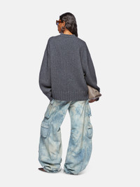 Sweater oversized in grey jacquard merino wool with curved hem roundneck with ribbed cuffs, hem and collar color matching rubber label at center back. Made in Romania. Style 248WCK107KW046084 SIZE & FIT The model is wearing a size 40 and her height is 69,6 in, bust 30,7 in, waist 23,2 in, hips 34,6 in - height 177 cm, bust 78 cm, waist 59 cm, hips 88 cm. Regular fit. We recommend taking your true size. DETAILS Main material: 70% wool 30% cashmere