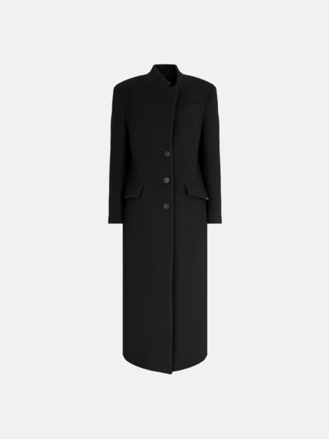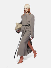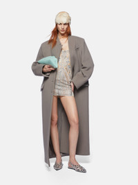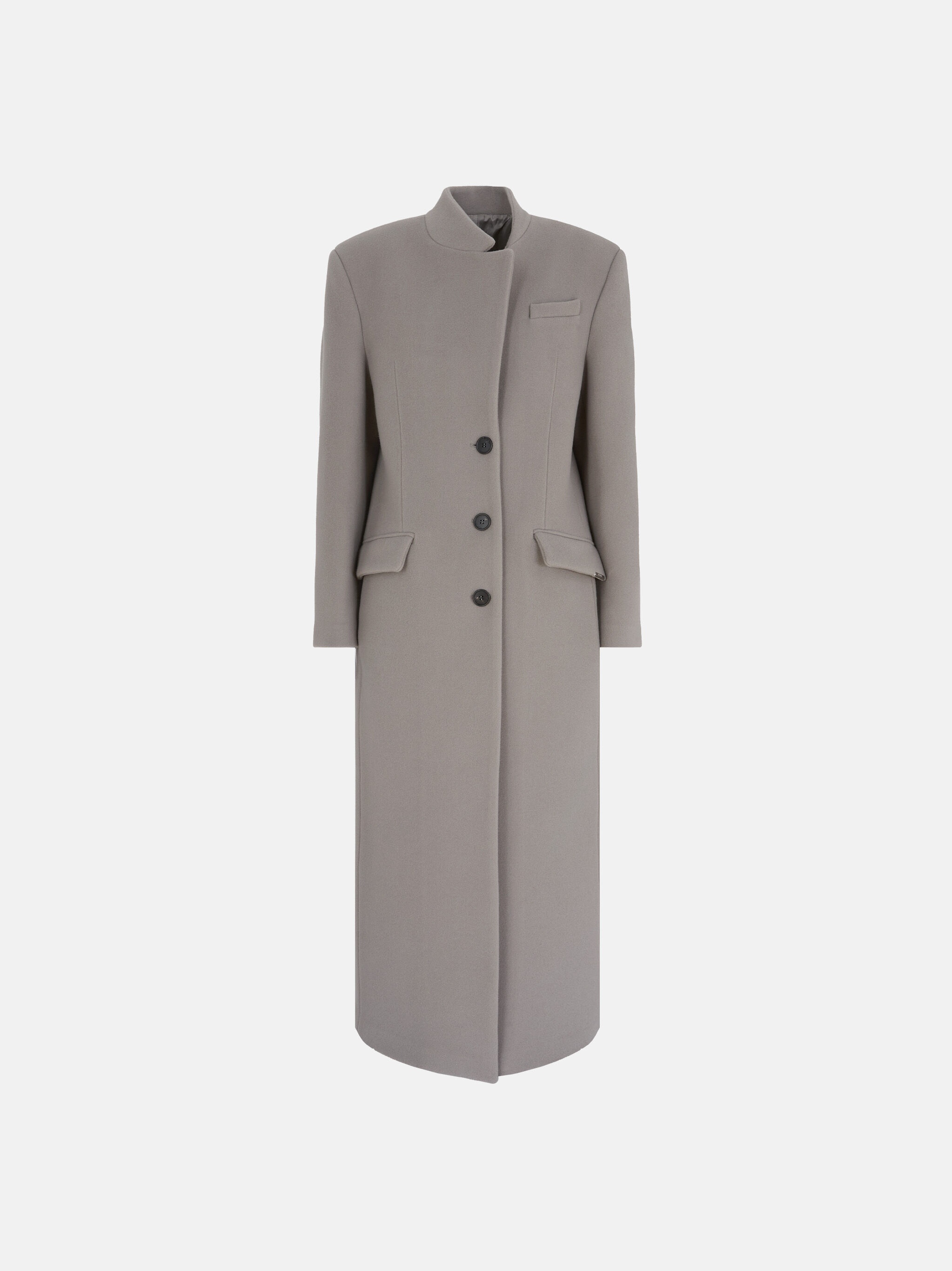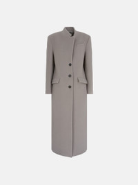 Single lapel long coat in grey twill wool cloth with buttons. Made in Italy. Style 250WCC00081WWV058AA084 SIZE & FIT The model is wearing a size 40 and her height is 69,6 in, bust 30,7 in, waist 23,2 in, hips 34,6 in - height 177 cm, bust 78 cm, waist 59 cm, hips 88 cm. Regular fit. We recommend taking your true size. DETAILS Main Material: 100% virgin wool, lining: 100% viscose