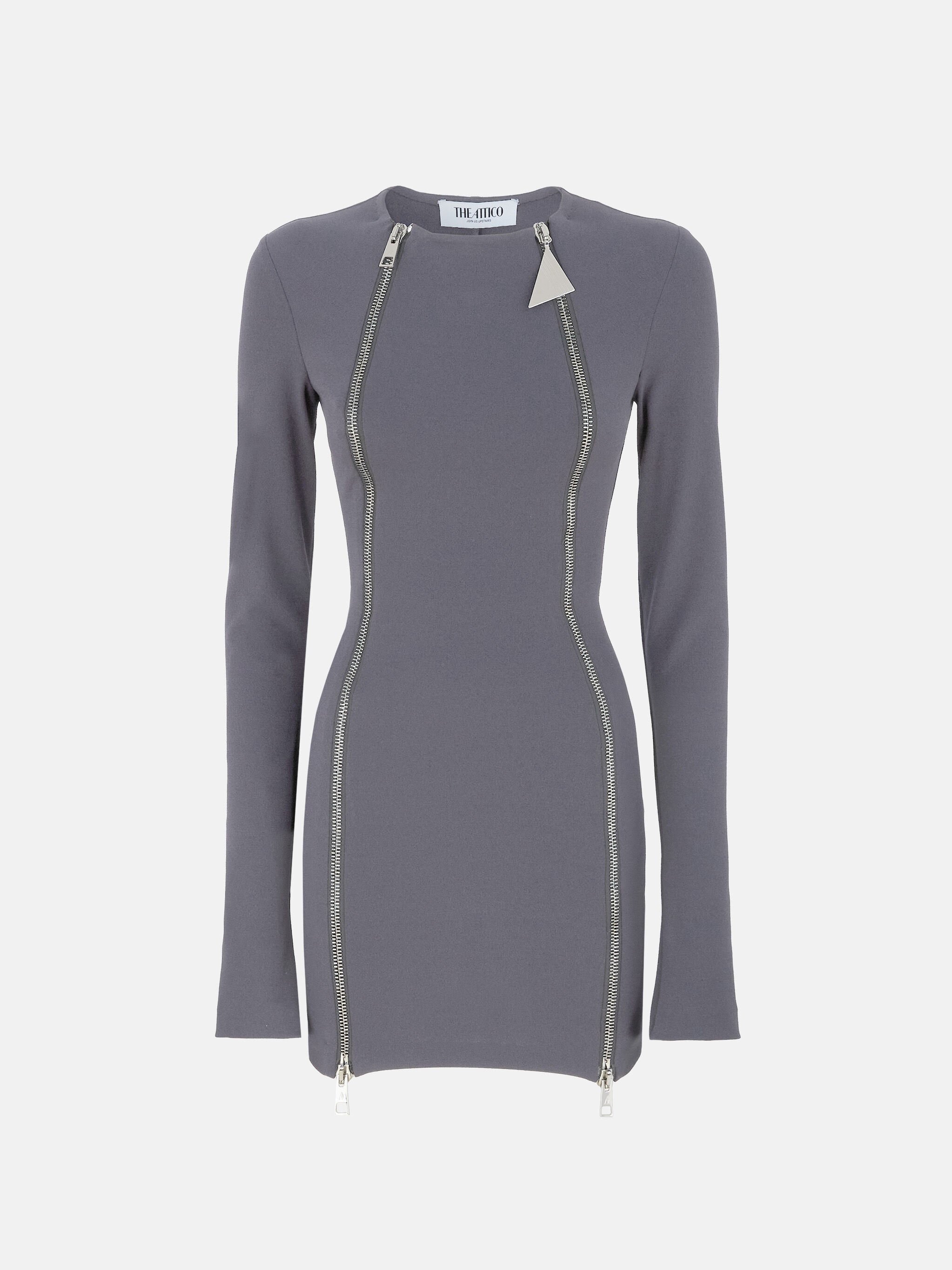 Mini dress in grey sable'' with long sleeves and logo metal zip puller. Made in Italy. Style 250WCA00385PLL002AA084 SIZE & FIT The model is wearing a size 40 and her height is 69,6 in, bust 30,7 in, waist 23,2 in, hips 34,6 in - height 177 cm, bust 78 cm, waist 59 cm, hips 88 cm. Regular fit. We recommend taking your true size. DETAILS Main Material: 100% polyester