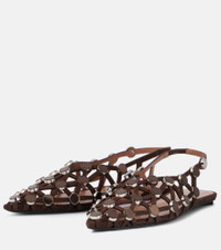 Grid embellished suede slingback flats