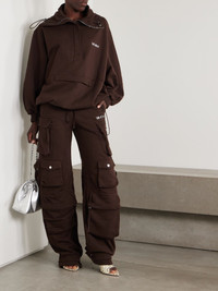 The Attico's sweatshirt is fitted with toggles at the hem, so you can cinch the waist. It's made from cotton-jersey that's left unlined for easy layering and has a half-zip placket with a wide collar and an embroidered logo at the chest. Size & Fit - Intended to be oversized; we recommend sizing down if you prefer a closer fit - Mid-weight, slightly stretchy fabric - Model is 177cm/ 5'10" and is wearing an IT 40 Model measurements: - Bust: 80cm/ 31.5" - Waist: 60cm/ 23.5" - Hip: 89cm/ 35" Details & Care - Brown cotton-jersey - Concealed zip fastening along front - 100% cotton - Unlined - Hand wash